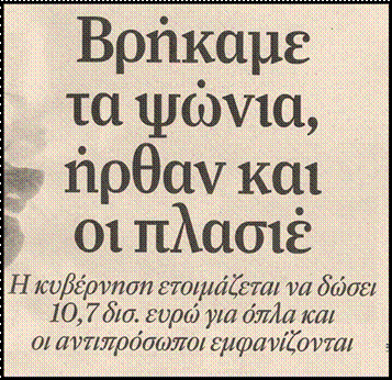 Με δεδομένο ότι και τούτη η κυβέρνηση προτίθεται να διαθέσει άλλα 10,7 δις ευρώ για την προμήθεια πολεμικού εξοπλισμού όλα τα «γατόνια» έσκασαν μύτη.