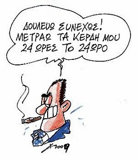Το είδαμε πρόσφατα όταν διαβάσαμε ότι μόνο το 9μηνο Γενάρης – Σεπτέμβρης του 2009, χρονιά της κρίσης, τα κέρδη των εισηγμένων στο χρηματιστήριο εταιρειών έφτασαν στο αστρονομικό ποσό των 11,8 δισ. Ευρώ. (Και για να σας δώσουμε ένα μέτρο σύγκρισης σας λέμε ότι οι κοινωνικές δαπάνες που προβλέπονται από τον Κρατικό Προϋπολογισμό για όλο το 2010 δεν ξεπερνούν τα 4 δισ. Ευρώ)!