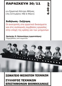 Παρασκευή 30 Νοέμβρη, 6μμ, στο Εργατικό Κέντρο Αθήνας (3ης Σεπτεμβρίου 48 Β & Μάρνη)