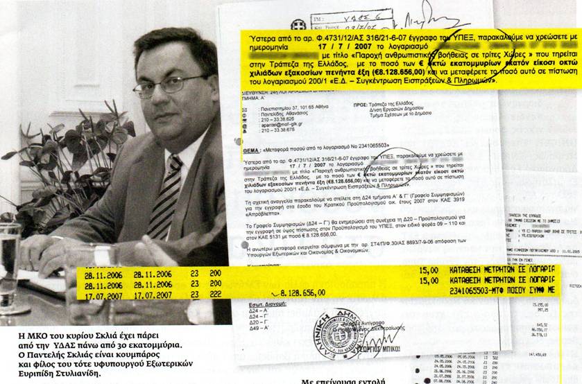 Το ΥΠΕΞ αποδέχθηκε τα κοστολόγια, εμφανίζοντας τα ως αποδεικτικά του έργου. Ο Παντελής Σκλιάς, τον οποίο ρωτήσαμε για τα έργα αυτά, μας απάντησε: «Πρέπει να ήταν γύρω στα 9-10 σχολεία, που κόστισαν 700.000 ευρώ, και το ποσό που πήραμε από την ΥΔΑΣ δεν ξεπερνούσε ούτε το μισό». Όταν είπαμε στον κύριο Σκλιά ότι άλλα αναφέρει το site της οργάνωσης, μας απάντησε πως δεν θυμάται ακριβώς. Η ΜΚΟ Ευρωπαϊκή Προοπτική έχει πάρει από την ΥΔΑΣ πάνω από 30 εκατομμύρια για δημιουργία έργων, ανάμεσα στα οποία «παροχή ψυχολογικής υποστήριξης στο Πακιστάν», «υποστήριξη της Κοινωνίας των πολιτών στη Σερβία» και άλλα πολλά, για τα οποία η εμφάνιση απτών αποδείξεων έργου είναι αδύνατη. Έτσι ως έργο εμφανίζονται κάποια τιμολόγια ξενοδοχείων και συνεδριακών εκδηλώσεων σε εξωτικές χώρες.