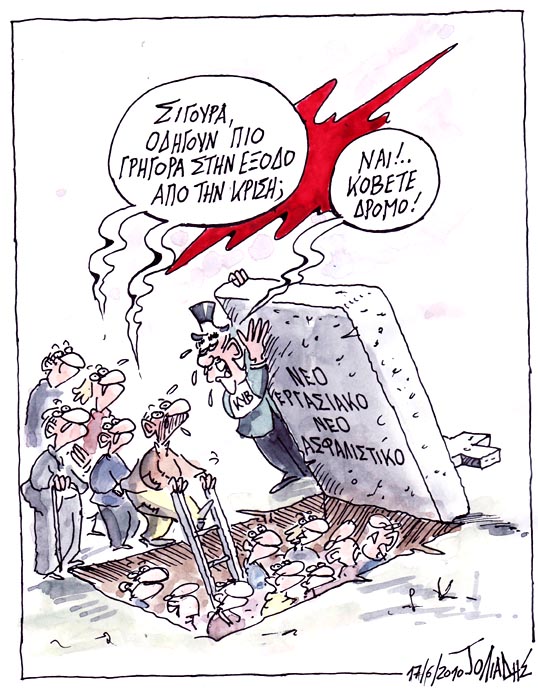 Οι τράπεζες που σώθηκαν (από τις συνέπειες των δικών τους κερδοσκοπικών δανείων) τώρα φοβούνται πως οι χώρες που χρεώθηκαν για να τις σώσουν δεν θα µπορέσουν να ξεπληρώσουν τα δάνειά τους. Και απειλούν να κάνουν τα δάνεια πιο ακριβά ή ακόµη και να τα διακόψουν, αν δεν πειθαρχήσουν στη λιτότητα. Οι πολιτικοί αντιλαµβάνονται πως, αν η απειλή πραγµατοποιηθεί στη δική τους βάρδια, η πολιτική τους καριέρα θα έχει άσχηµο τέλος. Οι πτωχεύσεις χωρών θα οδηγήσουν σε νέο χρηµατοπιστωτικό πάγωµα µε ολέθριες συνέπειες για το σύστηµα: οι χρεοκοπηµένες χώρες δεν θα µπορούν να ξαναδανειστούν για να ξανασώσουν τις τράπεζες.
