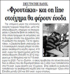 Οι πληροφορίες μας λένε ότι ενδιαφέρονται να αποκτήσουν τις άδειες (καλά τι μίζες θα τσεπώσουν οι “αρμόδιοι” δεν το συζητάμε) που θα δώσει η κυβέρνηση για το «βιντεολόττο» που σύμφωνα με τις εκτιμήσεις ανθρώπων της αγοράς «θα μαζέψει όλο το χαρτί». (Εδώ μιλάμε για κέρδη δεκάδων αν όχι εκατομμυρίων ευρώ κάθε χρόνο).