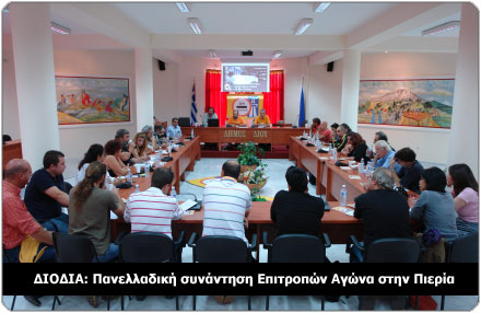 Περισσότεροι από 50 εκπρόσωποι Επιτροπών Αγώνα κατά των διοδίων από ολόκληρη την Ελλάδα, ανταποκρίθηκαν στο κάλεσμα της Εθελοντικής Ομάδας Δράσης Ν. Πιερίας για Πανελλαδική συνάντηση, η οποία πραγματοποιήθηκε το Σάββατο 2 Οκτωβρίου στο νομό Πιερίας, από τις 12:00 έως τις 17:00, στην αίθουσα του Δημοτικού Συμβουλίου του Δήμου Δίου.