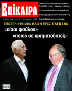 Τώρα ο δημοσιογράφος, πρώην βουλευτής του ΠΑΣΟΚ, Γ. Καψής, με επιστολή του που έστειλε στο περιοδικό «Επίκαιρα» προχωρεί ένα βήμα παρακάτω. Αφού στολίζει με ένα σωρό κοσμητικά επίθετα τον Θ. Πάγκαλο … του πετάει και το μπαλάκι. Του ζητάει να κάνει μόκο σε όσα του καταλογίζει γιατί διαφορετικά προαναγγέλλει ότι θα βρεθούν σε δικαστικές αίθουσες για να λύσουν τις διαφορές τους: «Ελπίζω ο κ. Πάγκαλος να μην μου απαντήσει. Θα το θεωρήσω σαν αίτηση συγνώμης. Διαφορετικά, θα ήταν δυσάρεστο να ανεβοκατεβαίνουμε στα κτίρια της τέως Σχολής Ευελπίδων», αναφέρει στην κατακλείδα της επιστολής του ο Γ. Καψής.