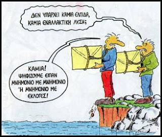 Το ενδιαφέρον όμως είναι άλλο. Τίποτε απ’ όλα αυτά δεν πρόκειται να ακούσετε να συζητάνε οι επίδοξοι υποψήφιοι των εκλογών της προσεχούς Κυριακής. Η χώρα και ο λαός της είναι έρμαια συμφερόντων και επιλογών που σχεδιάζουν το πώς θα ολοκληρώσουν την καταστροφή, αλλά δεν θα ακούσετε κανέναν από τους μνημονιακούς ή αντιμνημονιακους υποψηφίους να μιλάει γι’ αυτό. Τα θέματα της Ε.Ε., του ευρώ και της πληρωμής του χρέους είναι θέματα ταμπού. Μόνο οι αρπαχτές από τα ευρωπαϊκά ταμεία τους ενδιαφέρουν.