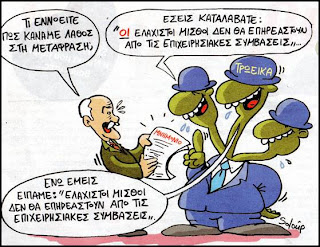 Από πού προκύπτουν όλα αυτά; Από ένα μνημονιο που κανένας από τους δημοσιονομικούς στόχους του δεν πραγματοποιείται; Από ποιον «εκτιμάται ότι (η πολιτική αυτή) θα συμβάλει στην ταχεία επάνοδο της χώρας στις διεθνείς αγορές κεφαλαίου»;