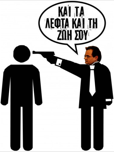 Στην περίπτωση του ιδιωτικού τομέα, όπως είναι ευνόητο, δεν υπάρχει ούτε καν το πρόσχημα ότι τα κέρδη από τη μείωση των μισθών πάνε στα κρατικά ταμεία και από εκεί στους ξένους τοκογλύφους που δανείζουν την κυβέρνηση. Στην περίπτωση των ιδιωτών όλα τα λεφτά που εξοικονομούνται από τη μείωση των μισθών πάνε ολόκληρα στην τσέπη του εργοδότη – και χάνονται κι από πάνω τεράστια ποσά που αντιστοιχούν στις ασφαλιστικές εισφορές των ποσών που περικόπτονται από τους μισθούς και θα πήγαιναν στα ασφαλιστικά ταμεία, ενώ χάνει και απευθείας το κράτος φορολογικά έσοδα εξαιτίας των μισθών που περικόπτονται και που είναι τα μόνα σίγουρα φορολογικά έσοδα, αφού κόβονται απευθείας από την πηγή χωρίς να ερωτηθούν οι εργαζόμενοι.