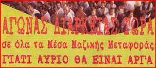 Χρειάζεται, λοιπόν, αγώνας διαρκείας από τώρα, γιατί όταν θα κατατεθεί το νομοσχέδιο θα είναι αργά. Χρειάζονται μαχητικές κινητοποιήσεις, που θα κάνουν την κυβέρνηση και το σύστημα να πονέσουν και όχι απλές διαμαρτυρίες, στις οποίες η κυβέρνηση δεν δίνει καμιά σημασία.