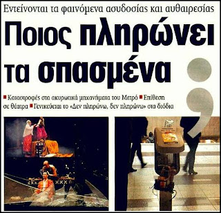 Εξόφθαλμη η προβοκάτσια. Η ανεγκέφαλη ενέργεια κάποιων νεαρών που εισέβαλλαν σε θέατρο ταυτίζεται με το μαζικό κίνημα ανυπακοής ενάντια στις ληστρικές αυξήσεις που επέβαλε η Μνημονιακή κυβέρνηση στα εισιτήρια των Μέσων Μαζικής Μεταφοράς!!!