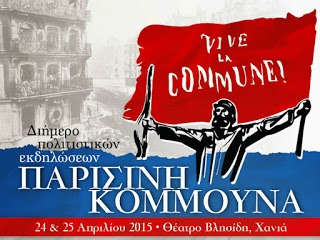 Το κείμενο που ακολουθεί αποτελεί την εισήγηση της Μαρί-Τερέζ  Χαρτζουλάκη, εκπαιδευτικού, στο ΔΙΗΜΕΡΟ ΠΟΛΙΤΙΣΤΙΚΩΝ ΕΚΔΗΛΩΣΕΩΝ για την ΠΑΡΙΣΙΝΗ  ΚΟΜΜΟΥΝΑ που συνδιοργάνωσαν στις 24 & 25 Απριλίου 2015 με μεγάλη επιτυχία και αξιοσημείωτη προσέλευση στα Χανιά της (Θέατρο Βλησίδη) ο πολιτιστικός σύλλογος: «ΟΙ ΦΙΛΟΙ ΤΩΝ ΓΡΑΜΜΑΤΩΝ» και ο σύλλογος: «ΑΝΑΜΕΣΑ ΣΕ ΔΥΟ ΘΑΛΑΣΣΕΣ- ΠΕΡΙΟΧΕΣ ΤΗΣ ΕΥΡΩΠΗΣ»